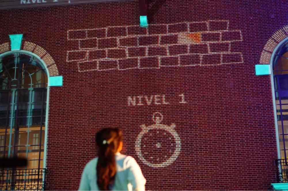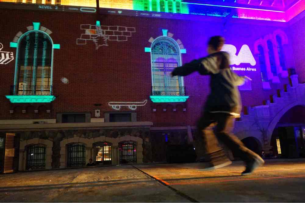 Instalación de Videojuego sobre Video-mapping sobre fachada de la Usina del Arte con captura de movimiento para controlar.