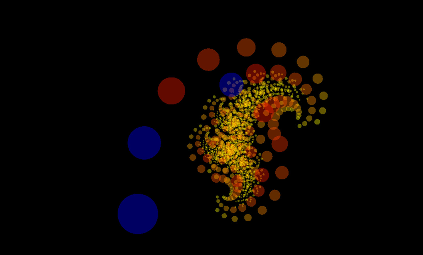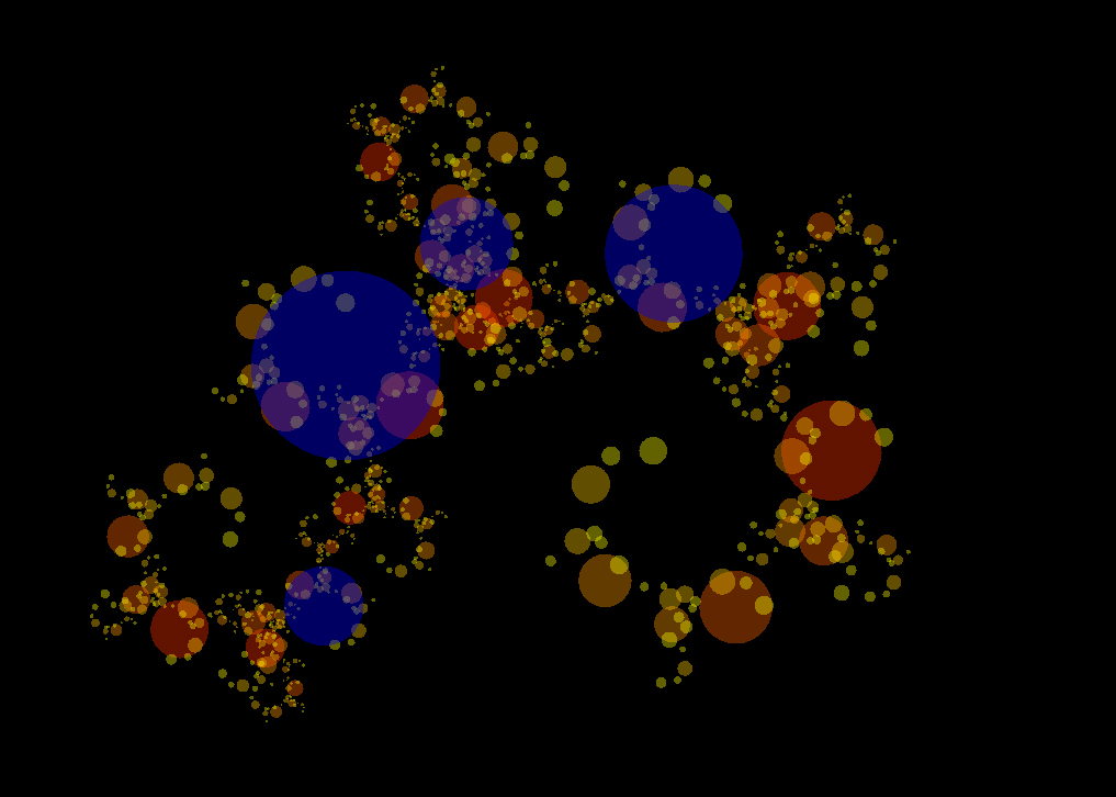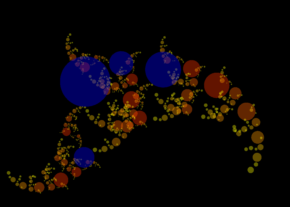 Los usuarios colocan círculos en el espacio, definiendo las características iniciales del fractal. Las propiedades clave que se tienen en cuenta son: