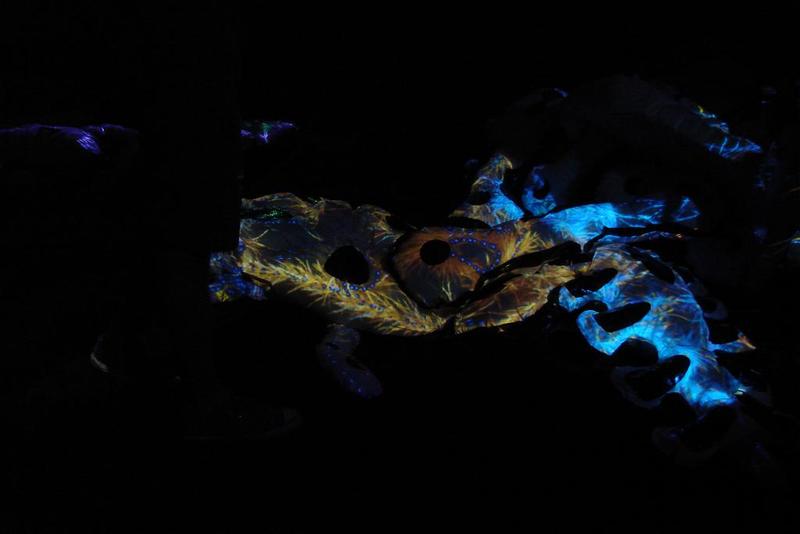 Instalación interactiva de Realidad Aumentada con esculturas en polietileno aumentadas mediante video-mapping.