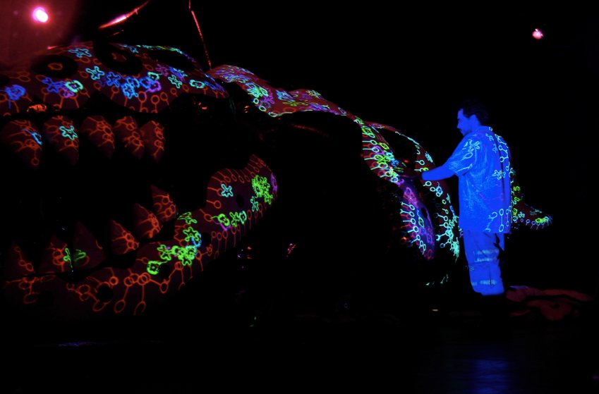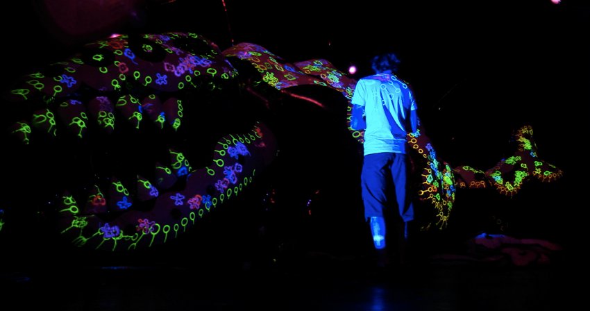 Instalación Interactiva de Realidad Aumentada con Escultura inflable mappeada en tiempo-real con Vida Artificial