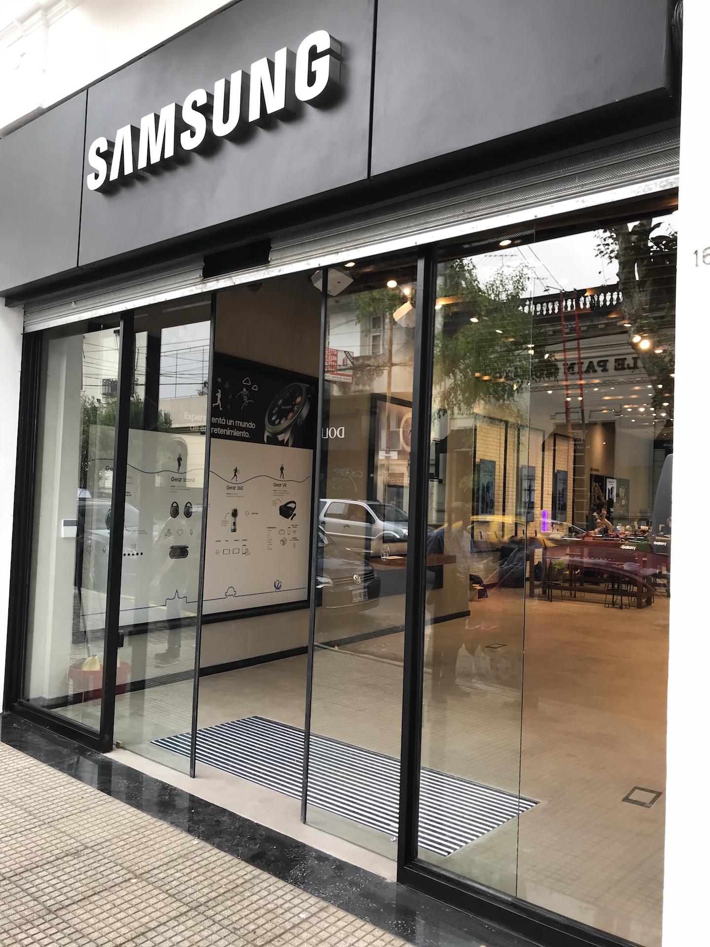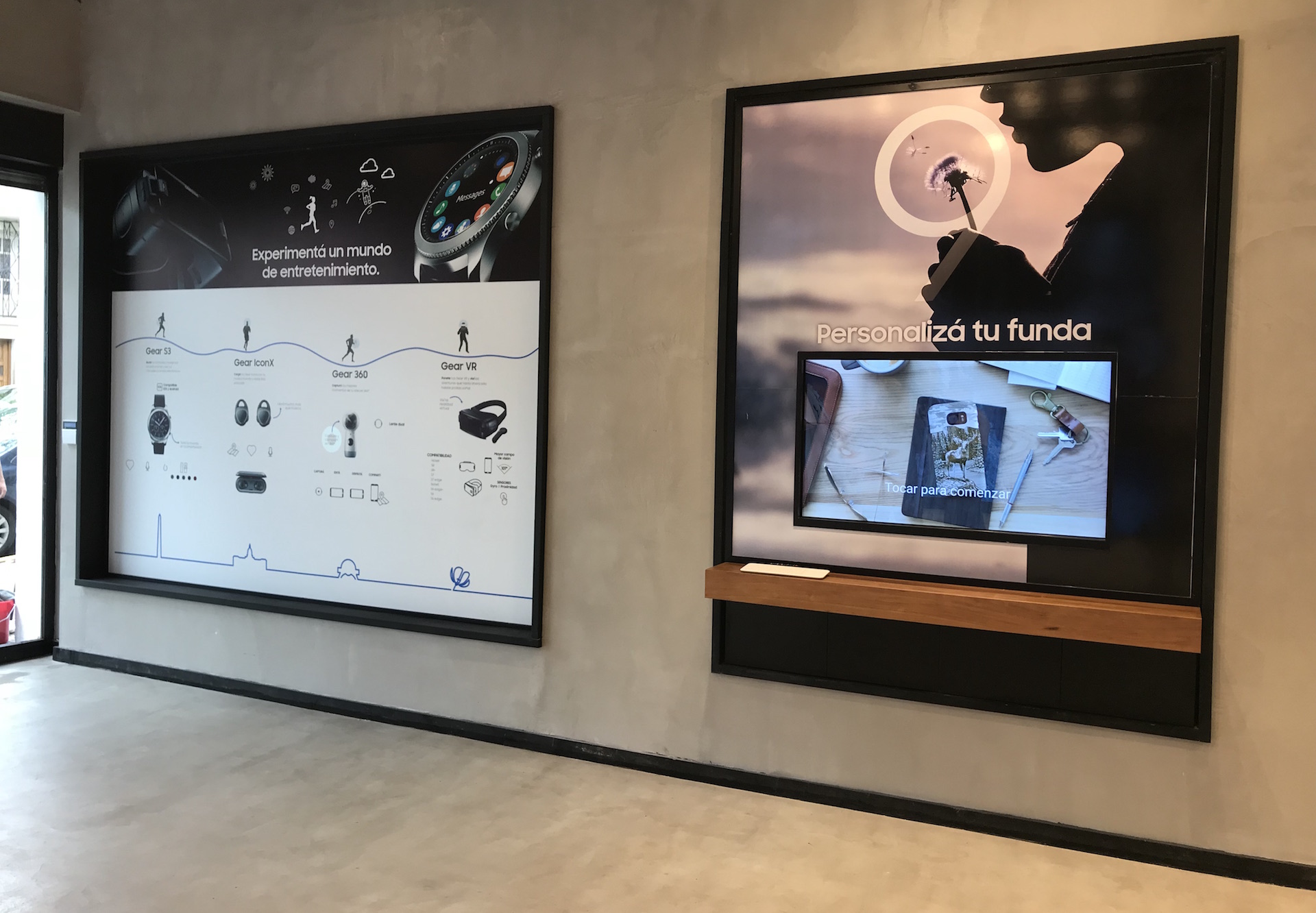 En 2018, Samsung encargó a Biopus la creación de un panel interactivo para la inauguración de su tienda en Palermo, Buenos Aires. La instalación combinó video mapping, realidad aumentada y un sistema de sensores capacitivos para transformar la promoción de sus nuevos productos en una experiencia inmersiva.